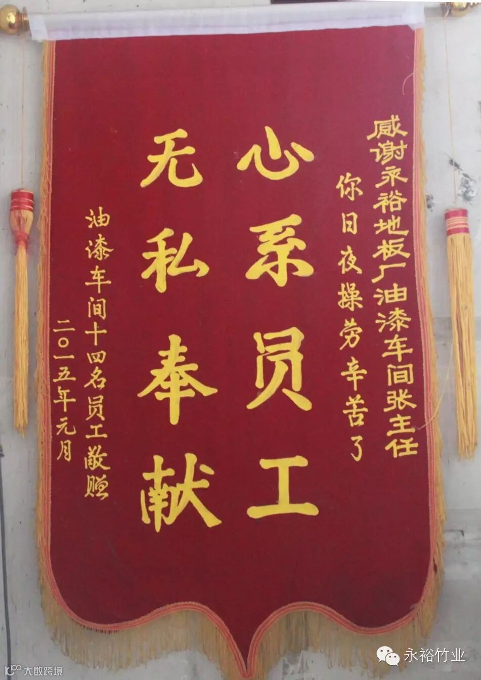 地板部自遵行总公司5S管理制度以来,一直施行的是最严格的5S考核,但张金渭所在的油漆车间每次都能在这场擂台赛上脱颖而出,分别获得了地板事业部5S最佳现场奖、先进集体荣誉。“我们现在每天都是带着发现的眼睛,按照5S管理上的要求,边工作边清理。”张金渭对我们腼腆的笑道。另外张金渭对同事工作上悉心指导,在生活上给予更多的关照,为表达感谢和拥护之情车间员工特别制作了一面锦旗送给了这只任劳的“领头羊”。