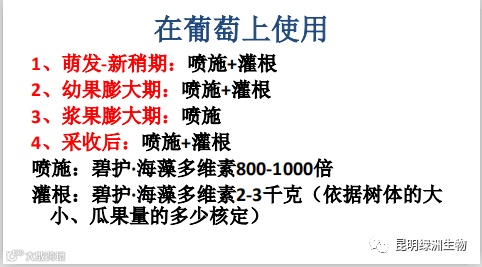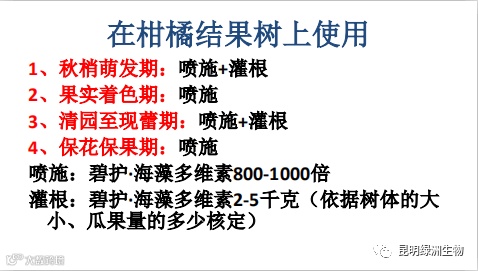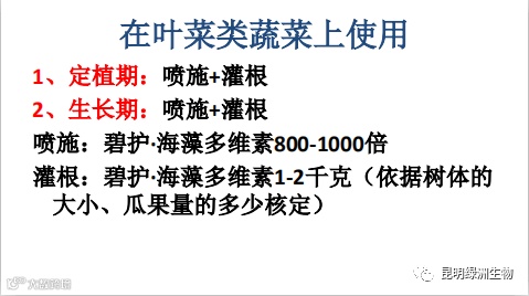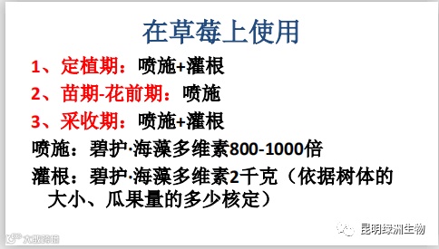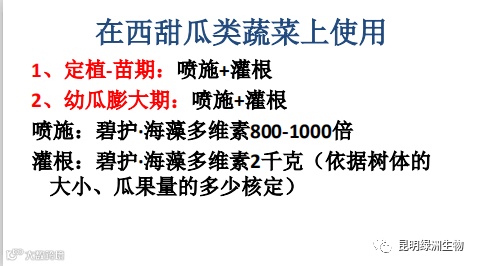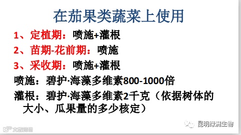 2、应用功效2.1、促萌保叶提抗性:叶面喷施、2.2、补充中微量元素促膨大:甜菜碱、甘露醇、氨基酸+N100克/升+K30克/升+钙20克/升+镁15克/升 +anngro2.3、促根、壮根、养根、护根:冲施、滴灌。