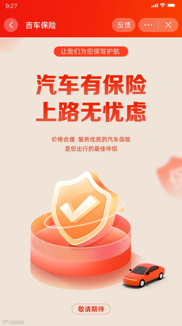 为了您的驾驶安全,我们即将呈现专属定制的保险服务。吉车保险让您每一次出行都充满安全的守护,开启无忧驾驶新篇章。