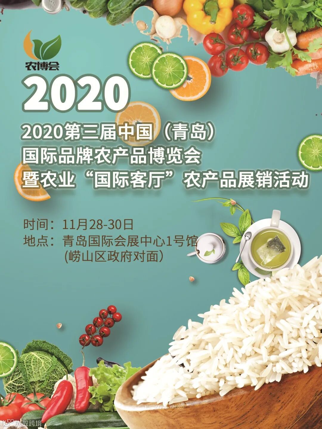 由青岛市农业农村局作为指导单位,青岛国信会展酒店发展有限公司、青岛国际会展中心共同主办,青岛国展商务展览有限公司承办的“2020第三届中国(青岛)国际品牌农产品博览会暨农业“国际客厅”农产品展销活动”,将于2020年11月28-30日在青岛国际会展中心1号馆举办。