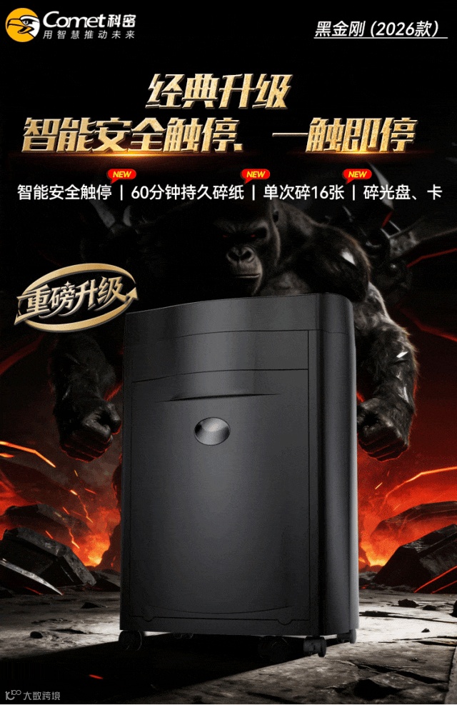 当然,科密碎纸机家族的两大“明星”——黑金刚与1625D必不可少!它们全新升级了智能安全触停功能,让办公安全再上一个台阶!