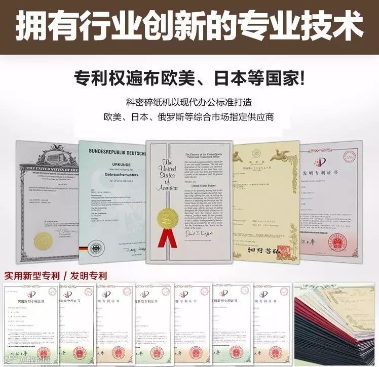 那么作为碎纸机行业的佼佼者科密碎纸机荣获了多少国家专利呢?本着打铁还需自身硬的原则,科密碎纸机,自品牌创立之初,历经24年的积淀与耕耘,一直致力于产品的研发与自主创新,不断推出各种新品,为消费者带来更加人性、更加贴心、更加便利的服务。我们领先行业的技术和稳定的品质,使得产品不断深得普通消费者的信赖。
