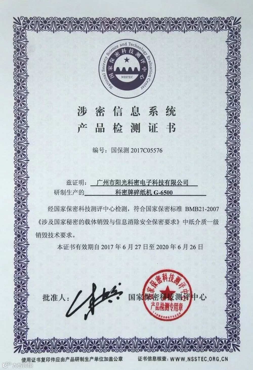 阳光科密研发的高保密S系列碎纸机,荣获国家保密科技测评中心颁发的资质证书,阳光科密产品技术都是反复经过多重测试检验,材料检验、配件检验、性能检验,检测确认后才进行组装。匠心设计,只为给用户提供最佳的办公碎纸体验!