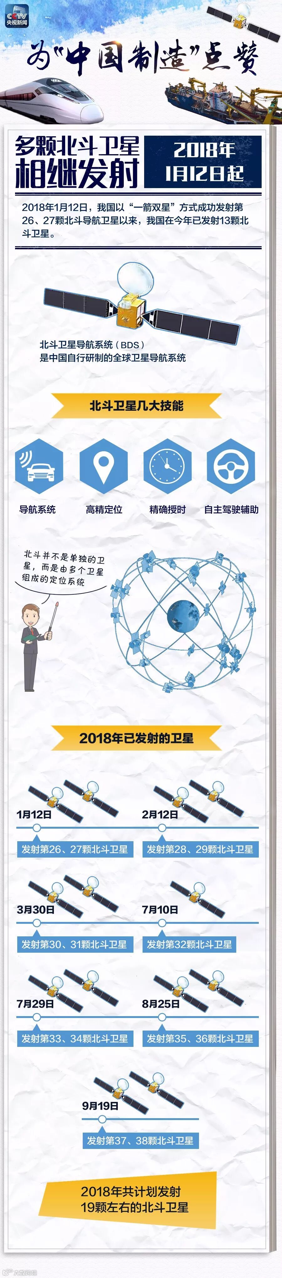 2018年,我国多颗北斗卫星发射、首艘国产航母完成海试、广深港高铁开启