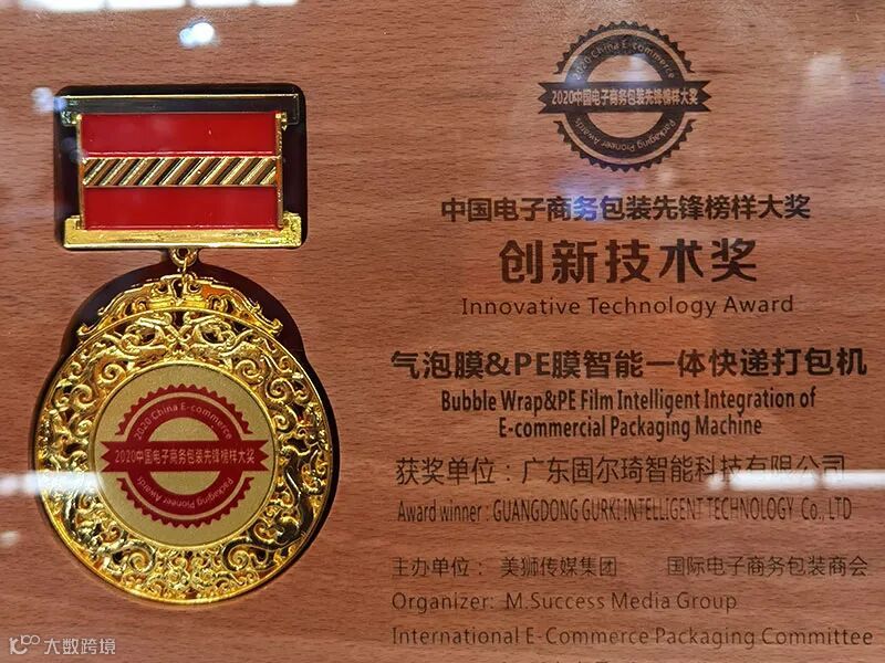 9月21日,固尔琦气泡膜智能快递打包机荣获2020中国电子商务包装先锋榜样大奖——创新技术奖。固尔琦将不忘初心,继续深耕智能化发展的技术领域,继续努力,再创新辉煌!