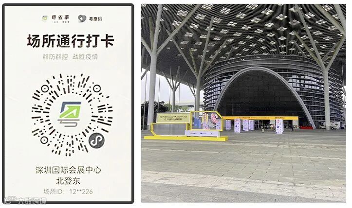北登录大厅东:大门口需要进行粤康码绿码通行验证!请提前扫码识别“深圳国际会展中心北登东场所通行打卡”,便于您更快进入!