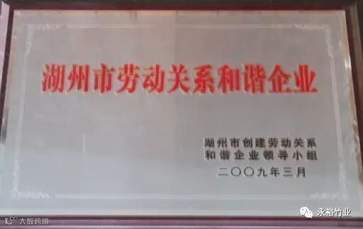 公司工会先后被授予“2016年先进职工之家”“称心职工食堂”“四星级职工宿舍”“优秀安全示范班组”“湖州市劳动关系和谐企业”、“先进工作单位”、“先进集体”、 “模范集体”、“劳动关系和谐企业优胜单位”、“工会工作先进单位”“”等多项荣誉称号。