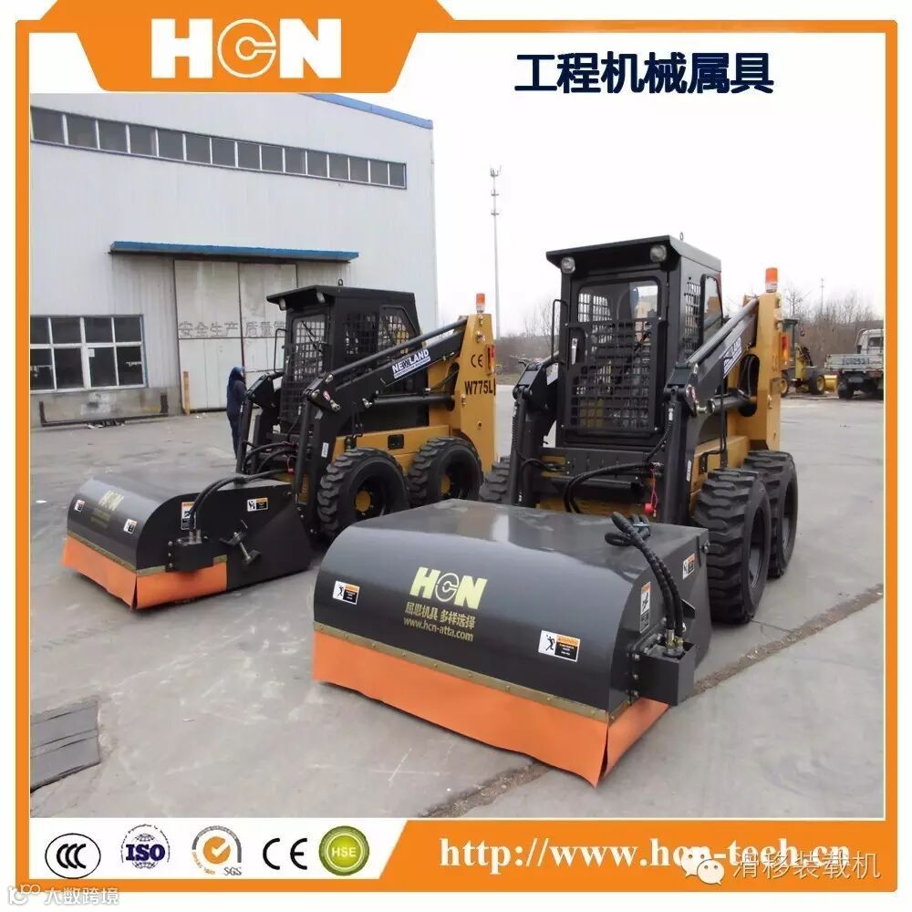 该附具可以安装在滑移装载机、装载机等机器上,可以向前或向后清扫路面上的灰尘和废料,迅速清洁停车场、人行道、码头、仓库和港口等场地。可以把清扫的垃圾放在集料斗内,放到指定位置。清扫效果好,使用寿命长,毛刷可以快速更换,省时省力,得到了客户的一致好评!