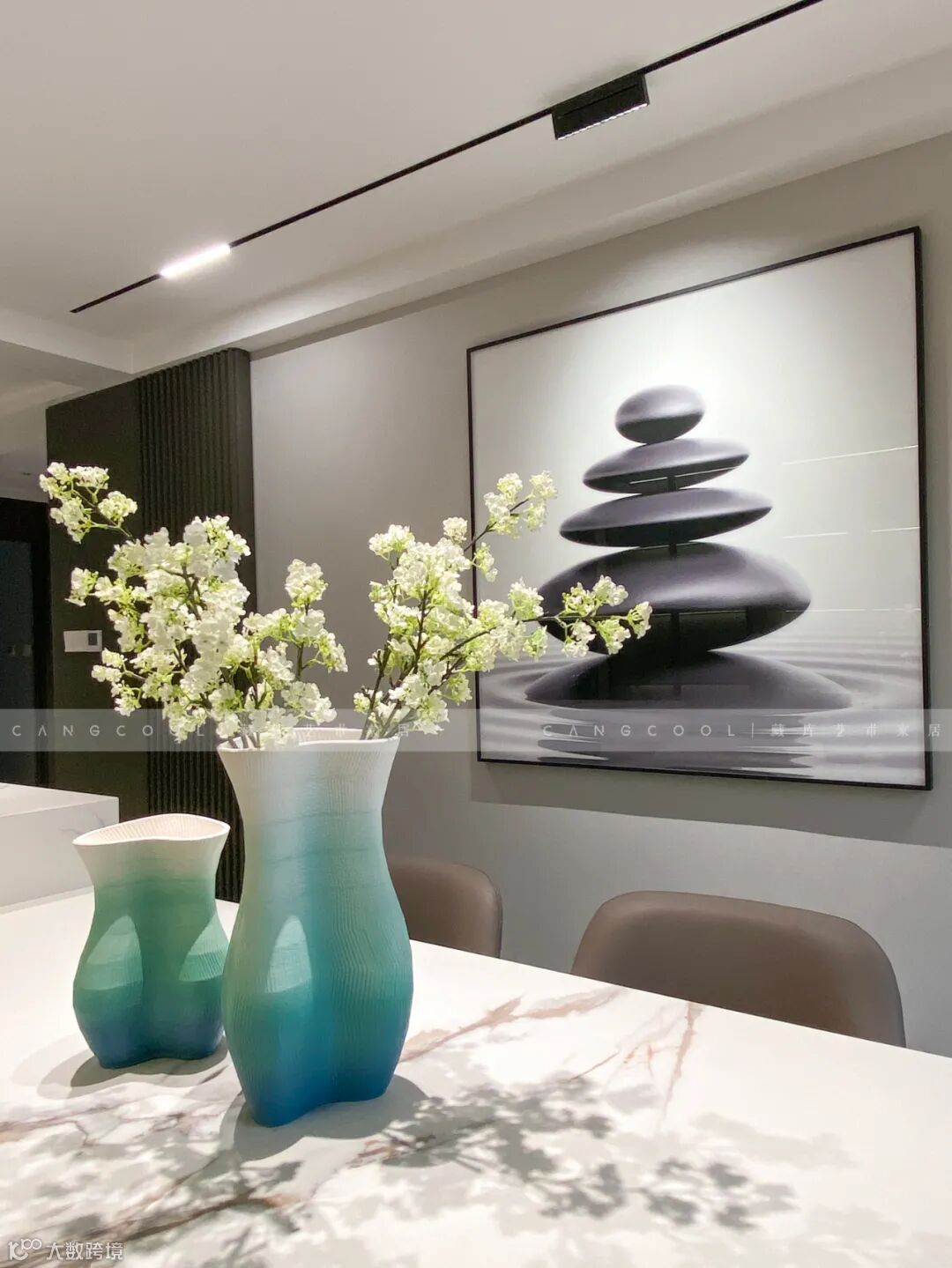 抛弃繁重琐碎的陈设,转而使用简单且色彩较少的家具,在视觉上直观的感受到极简主义带给整个空间一种时尚而高雅的感觉