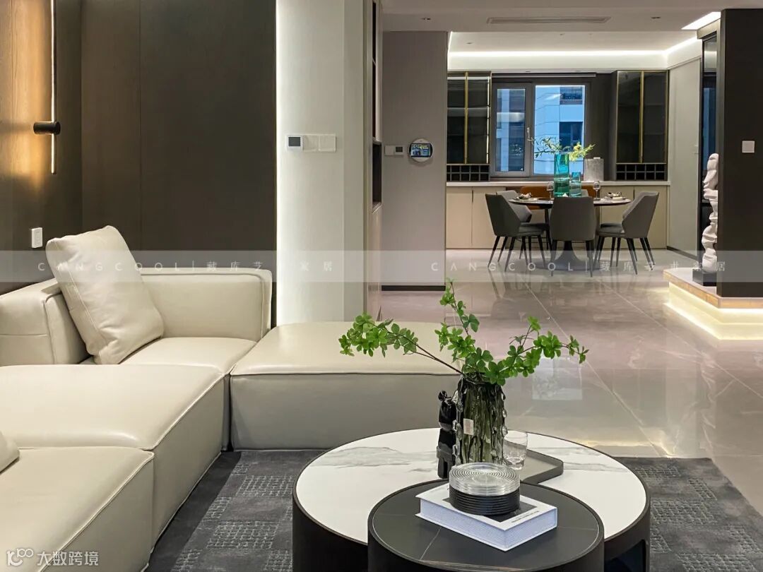客厅贯穿“少即是多”的极简主义思想,简约的家具造型装饰空间,最大化突出空间及布局的优点