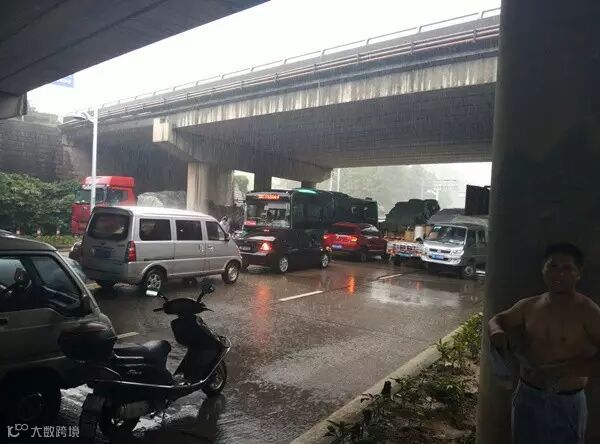 都在躲雨,特别是货车,整个桥下堵的死死的