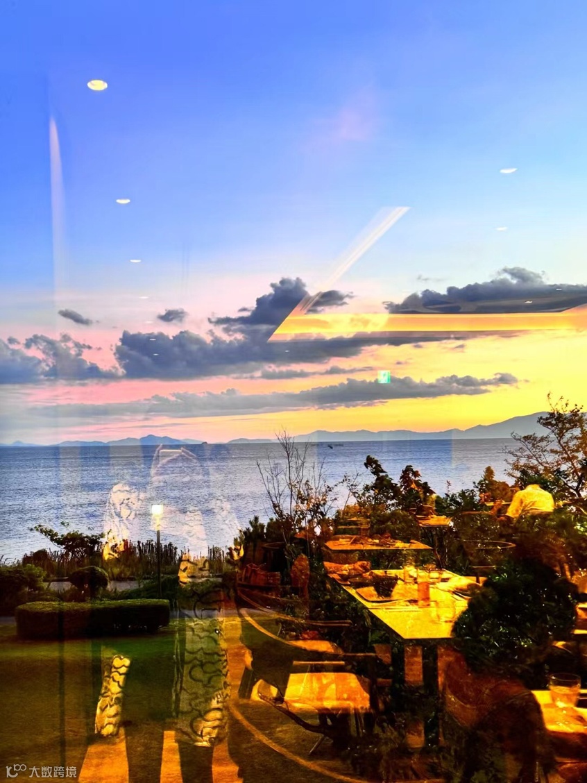 傍晚时分,我们入住了琵琶湖旁边的酒店。琵琶湖风景美不胜收,湖水清澈见底,天空映在水面,海天一色。我们在酒店还看见了特别美的落日。