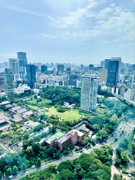 东京塔耸立于东京市中心,它不仅是一座通讯和观光塔,更是日本战后复兴和快速现代化的象征。这座塔以白色和国际橙色涂抹,设计上受到巴黎铁塔的启发,却散发着独特的日本魅力。我们乘坐着观光梯,登上了东京塔的上端。从东京塔上往下看,可以看到东京市的繁华。白云蓝天下,繁华都市,尽收眼底。
