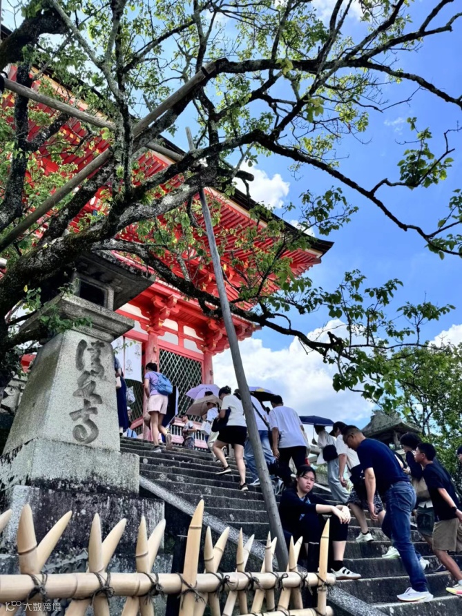 第五天,我们去了清水寺。清水寺是《名侦探柯南》中新一和小兰“世纪之吻”的取景地,有很多慕名而来的游客。庄严的寺门散发着古老的香气;红墙绿瓦之间,隐藏着无数个故事;曲径通幽的石阶蜿蜒而上,仿佛在追逐着柯南解谜的脚步。