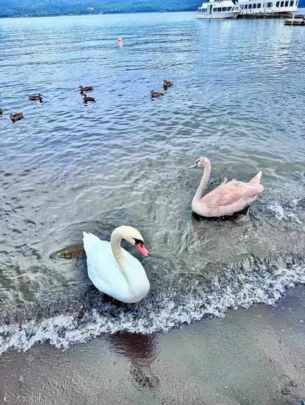 之后,我们还去了忍野八海,看了看日本的乡村。据说在之前,这是忍者居住的村落。在那里,我们还喂了天鹅。
