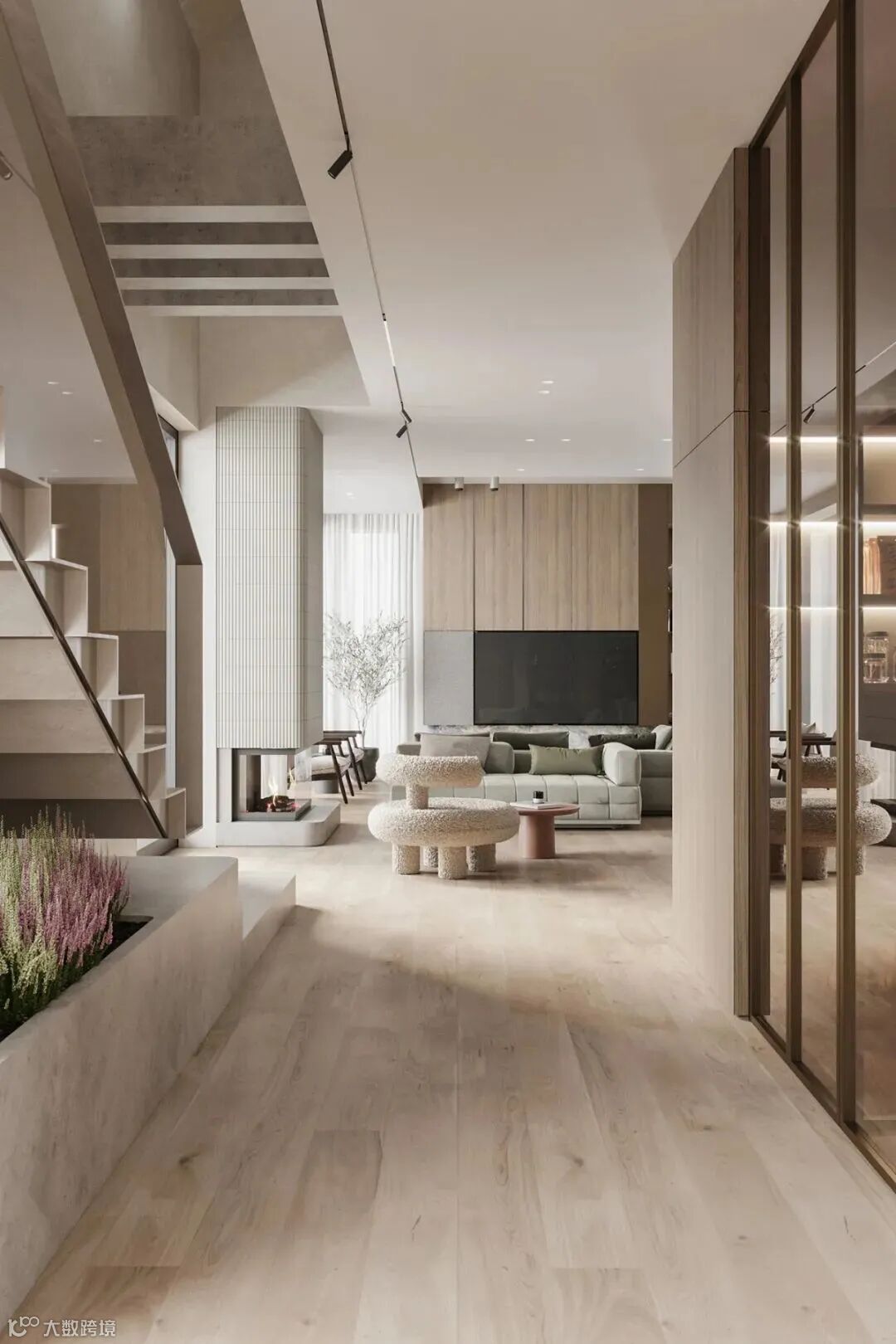 设计师利用住宅本身具备的空间优势,来营造一套高效而完整的功能型空间,同时,又在设计上做减法,实现减压、无负担、轻盈的生活视角。