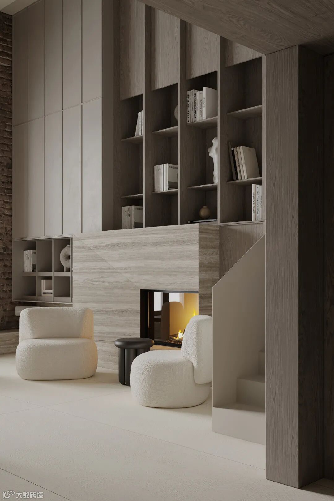 低调内敛的空间、挑高的结构,一种暗藏张力的艺术就在客厅铺设开来,不同色阶的灰色调所带来的理性与克制蔓延在墙面上,简练中带着高级,黄色成为跳脱的色温视觉,避免空间压抑感和视觉上的沉闷。