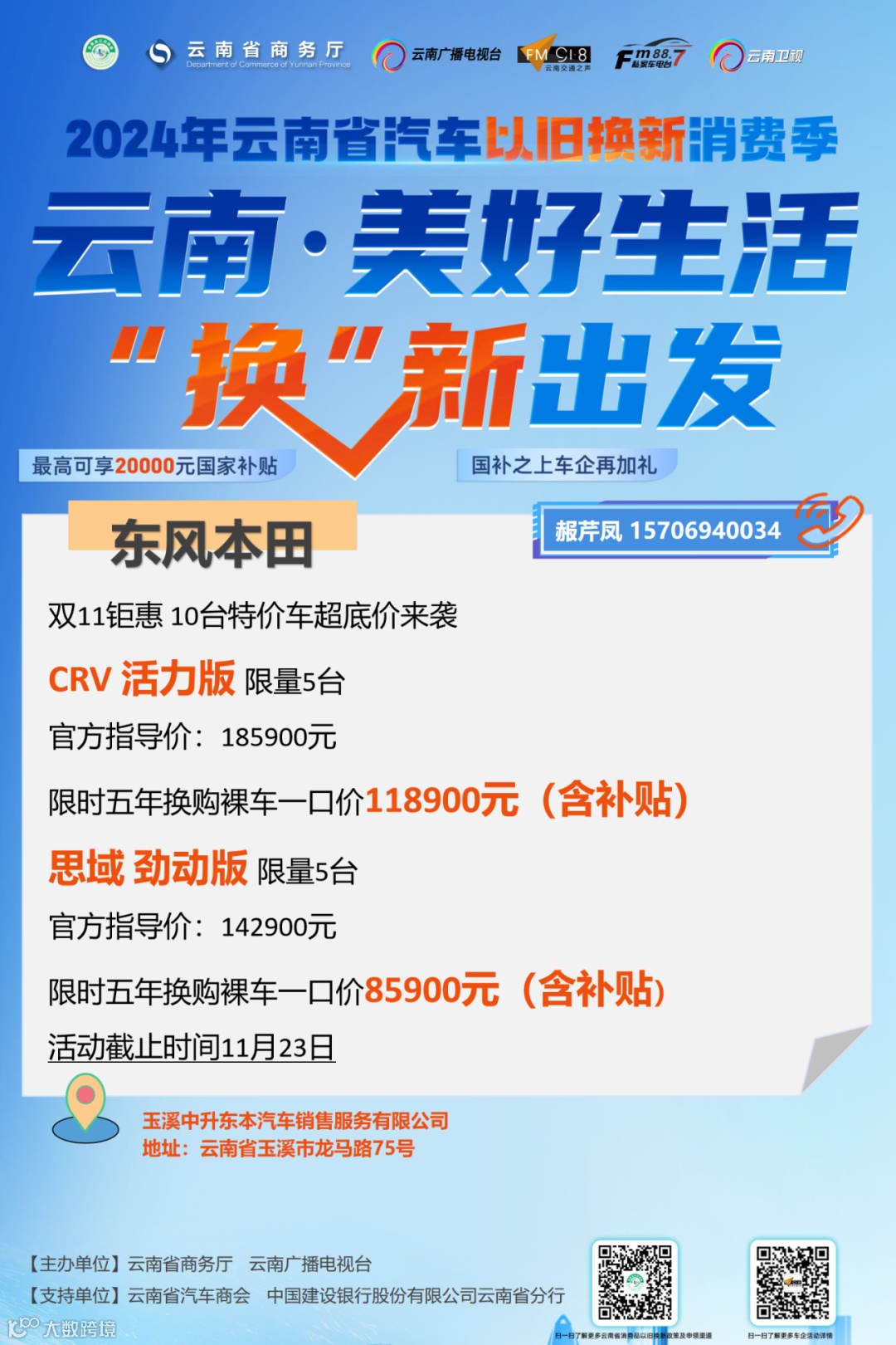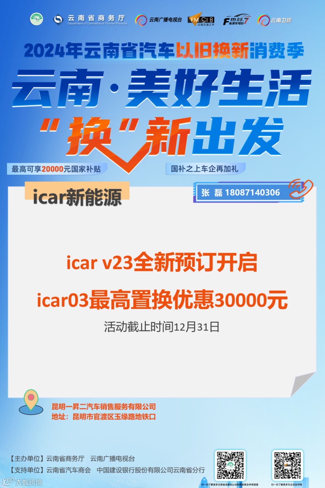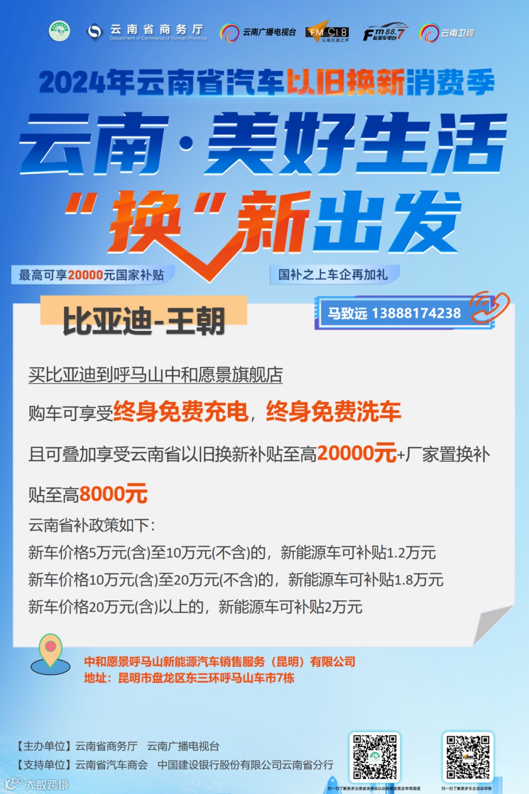 车企可关注“918云南交通台”微信公众号回复关键词“以旧换新”或直接扫描下方二维码进行活动报名。