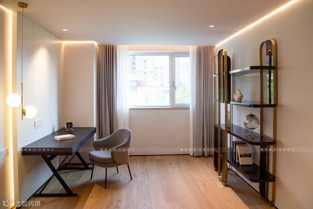 主卧一边是可以尽情穿衣打扮的衣帽间,另一边是需要安静的休息区,两个空间既融合又独立,十分贴心。