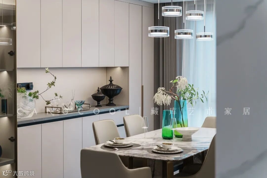 使用明晰而艺术的线条,从视觉上体现简单,高雅和时尚风格;灯具的光影洒于桌面之上,于是生活便在这里彰显。