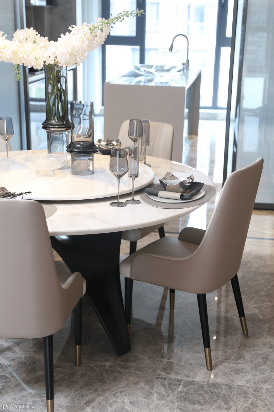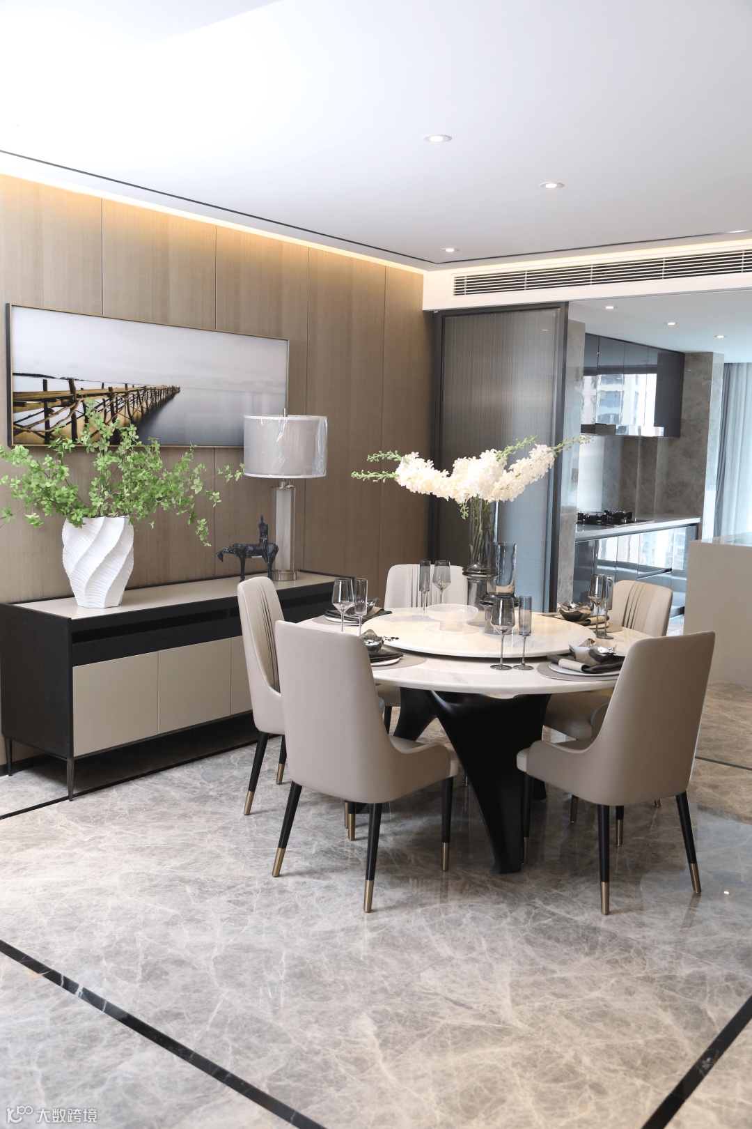 室外的光线流泻而进,衬出大理石自然的肌理。丰富的细节展示,兼顾优雅的格调、高贵的品质和简洁的风格,简单但不失风范,让空间有不一样的韵味与格调。