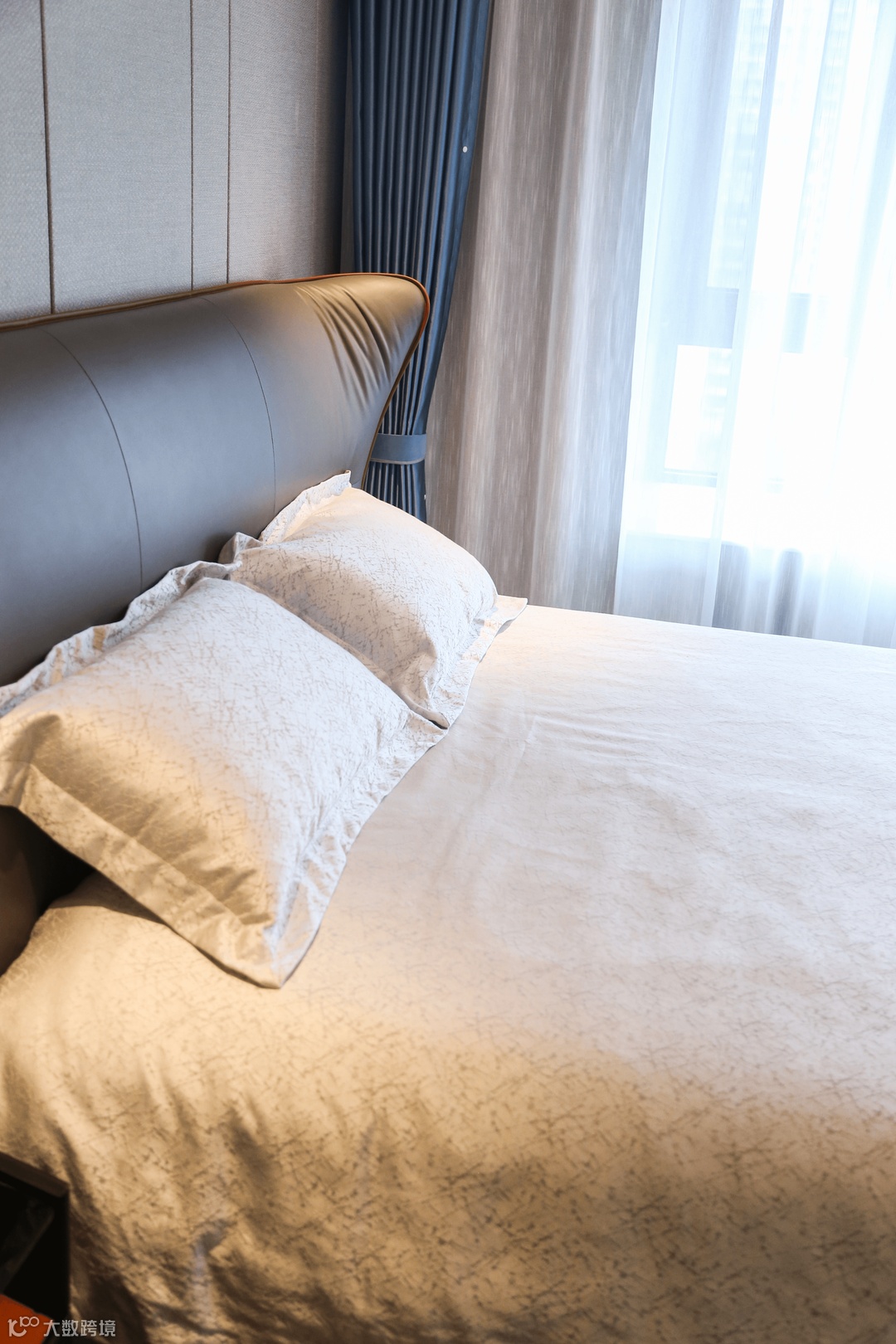 细碎的阳光悄悄打量着静谧的卧室,从软装色调到材质,足以让人卸下一身疲惫,融入其中,让身体浸染在宁静的环境里。