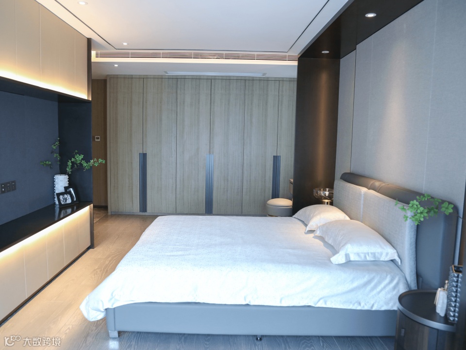 主卧的设计将意式轻奢的概念应用到极致,精简的线条与大气沉稳的色彩,形成高贵时尚的空间氛围。