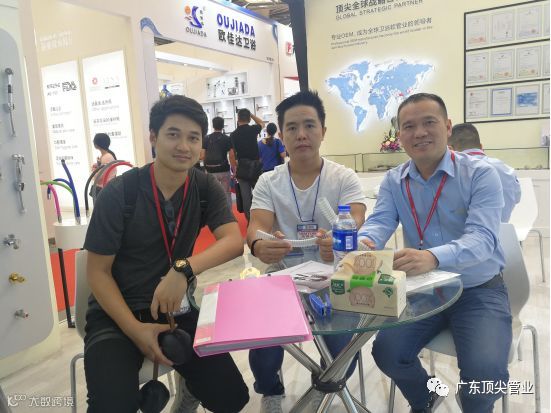 顶尖管业展位时尚靓丽的布局吸引了众多观展人士以及媒体记者驻足欣赏。凭着强大的产品实力,展会现场与众多意向客户建立了合作关系,更有老客户当场下了十万套的产品订单,收货颇丰!