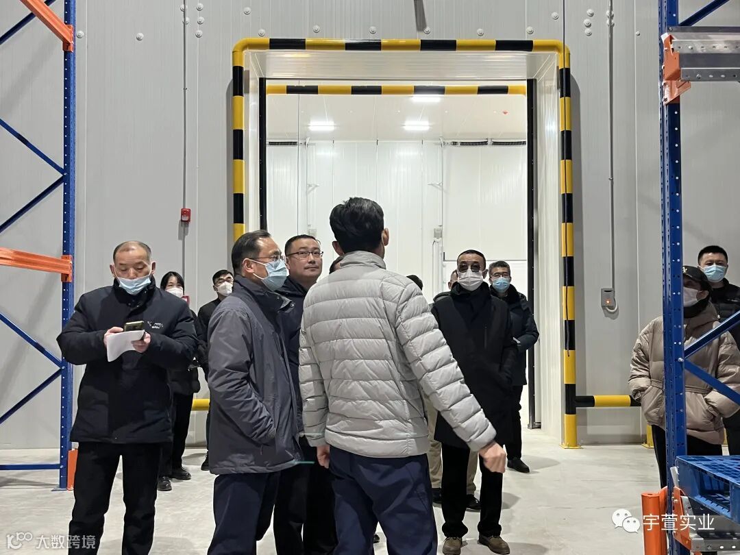 蚌埠市禹会区副区长余忠及蚌埠市政府、禹会区相关部门人员陪同调研,宇萱食品科技副总经理张家训、仓储运营总监王同宝等陪同接待。