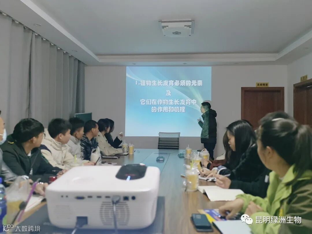 年假收尾,开启新的一年,上班之际安排了市场部技术指导的薛老师给公司员工培训上课讲述了关于植物生长发育必须的元素及它们在作物生长发育中的作用和机理。