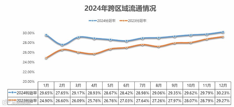 2024年,二手车市场展现出了一系列鲜明的特征。其中,跨区域流通趋势的加强尤为显著。12月份,二手车的转籍率已超过30%,较去年同期增长了1个百分点。说明消费者对二手车的选择正变得更加多元化、跨区域化,二手车市场的活跃度在不断提升。同时,得益于新能源汽车保有量的持续增加,新能源二手车市场也呈现出蓬勃发展的态势,全年交易量成功突破100万辆大关。政策的有力支持、消费结构的变化以及创新模式的不断涌现,都为新能源二手车市场的蓬勃发展提供了有力的保障。