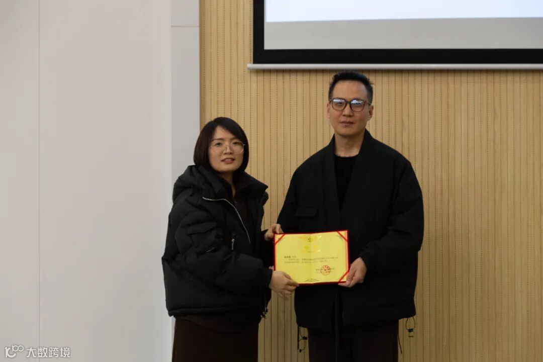 藏库艺术家居设计总监陈家聪也对室内软装行业的发展前景、就业情况提供了一些有效建议,并对学生们提出超多祝福寄语。随后,受学校委托,西安培华学院建筑与艺术设计学院相关负责人也为陈家聪设计总监颁发“特聘导师”荣誉证书,诚聘其为西安培华学院建筑与艺术设计学院创新创业导师,自2023年12月15日起生效。