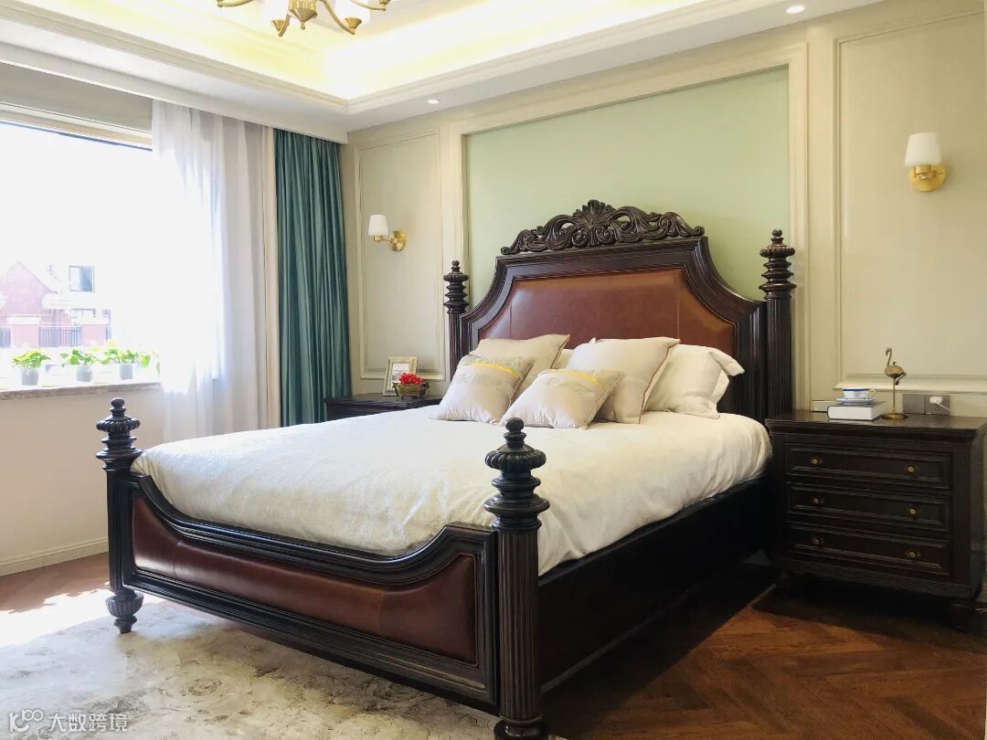 ①设计师从业主对新家的期待出发,基于整体的硬装基础,充分利用室内空间,通过软装的尺寸、颜色、材质等要素,将温馨、浪漫的氛围融入美式典雅大气的空间中,更显室内温暖干净、富有生活气息又不失格调。