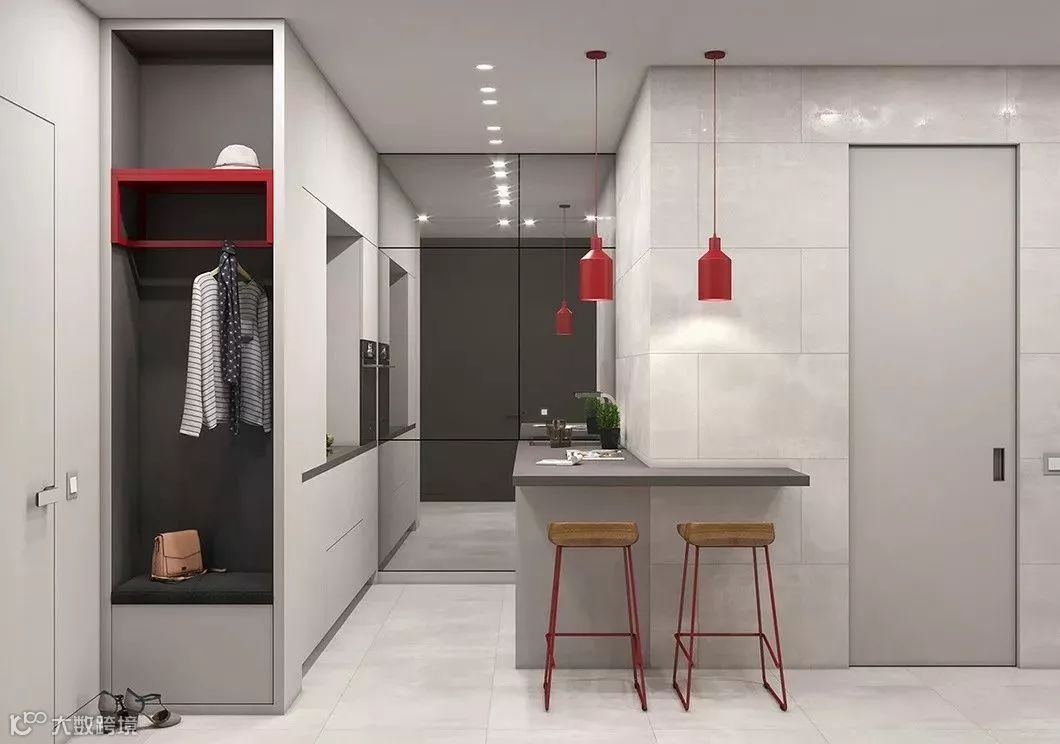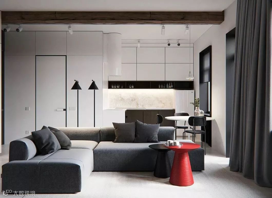 高级灰+红色,犹如刺破黑夜的光,有着无法忽视的视觉冲击和强大张力,作为家居配色使用,彰显着个性时尚的豪奢风范。