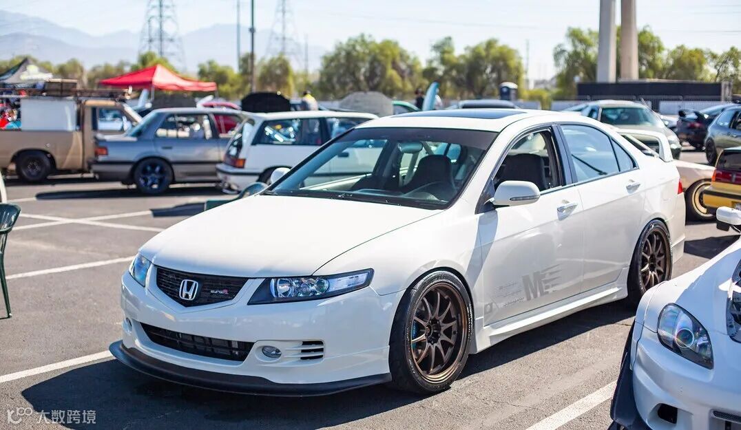 在Civics(思域)和Integras的车海中,这款讴歌TSX还是可以脱颖而出。车主 Angel Pena 在外观上把格栅、前唇和过时的前大灯都更换为 Euro R 规格的样式以获得看上去更无缝的外观,悬挂方面也进行了一系列升级,包括装有 Swift 弹簧的 Feal 避震器、后部32mm ASR和 OEM TL-S 前摇杆组合。