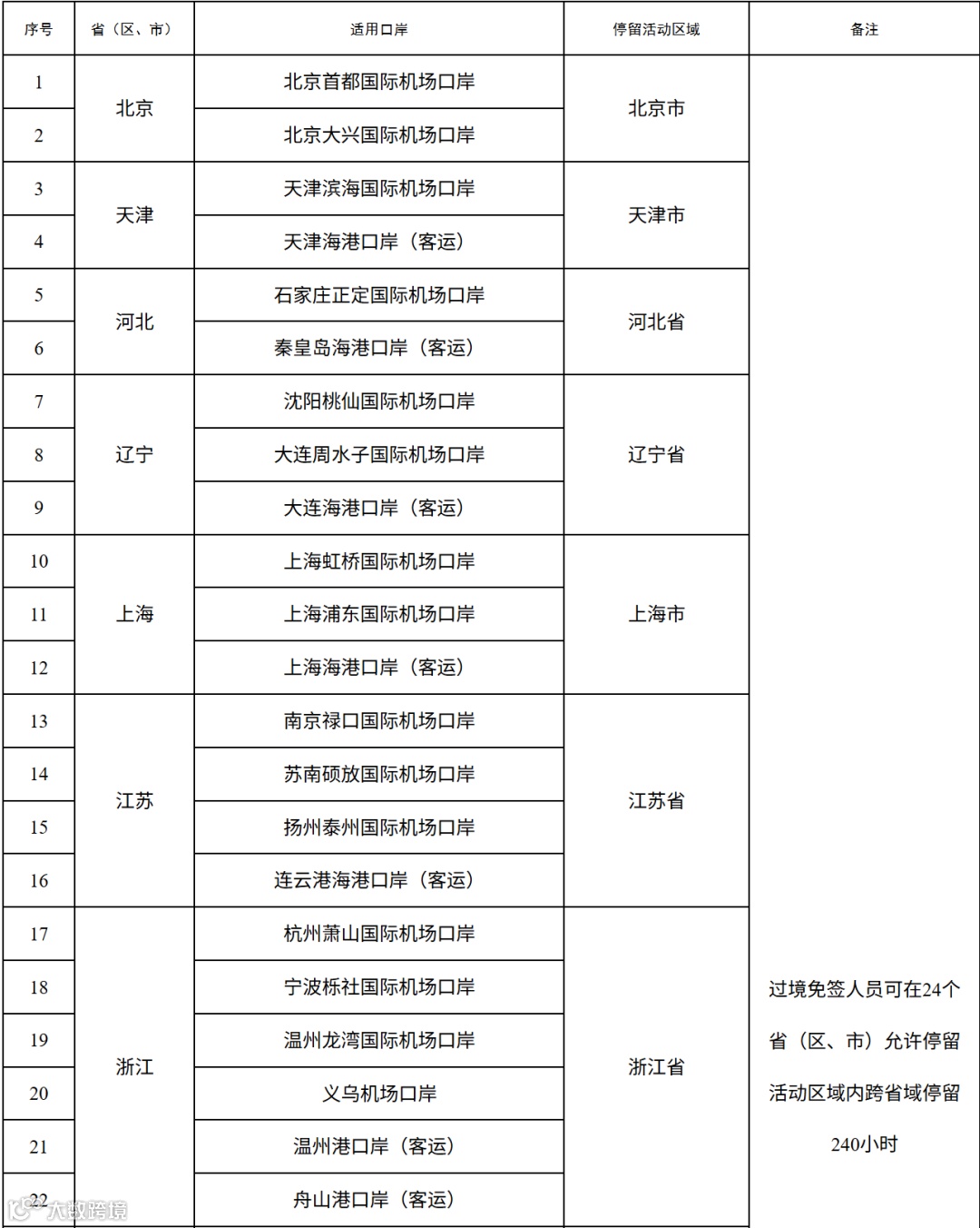 (二)适用口岸和停留活动区域,再加本次新增广东省5个口岸