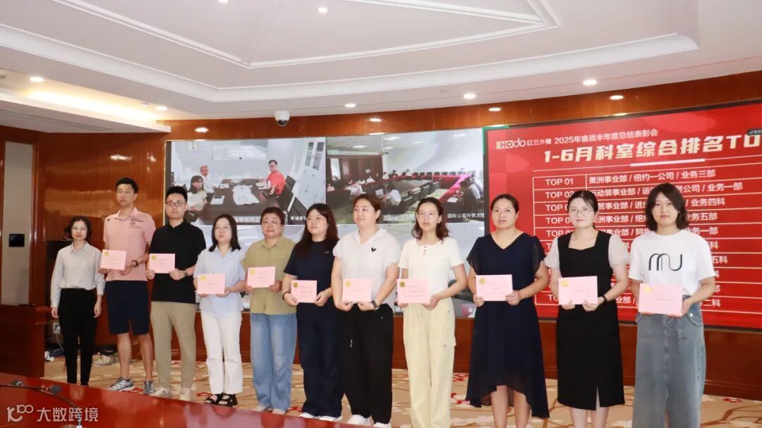 为全面总结回顾上半年工作成效,明确下半年发展目标,凝聚共识、激发干劲,7月17日,红豆外贸成员齐聚一堂,召开2025年奋战半年度总结表彰会,共话奋斗成果,表彰标杆典范,擘画未来蓝图。