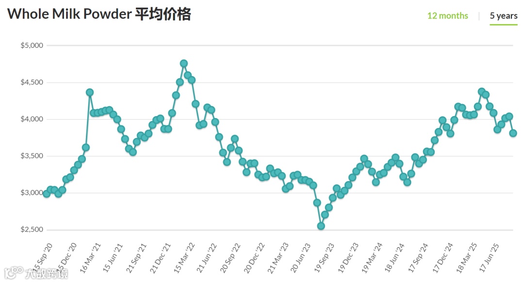 导读:脱脂乳粉价格下跌5.8%,均价2,620美元/公吨;全脂乳粉价格下跌5.3%,均价3,809美元/公吨;黄油价格下跌2.5%,均价6,969美元/公吨;无水奶油下跌2.6%,均价6,917美元/公吨