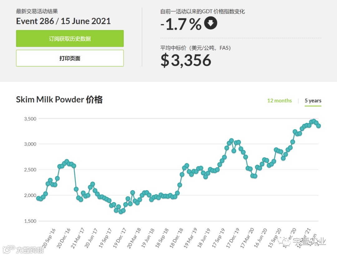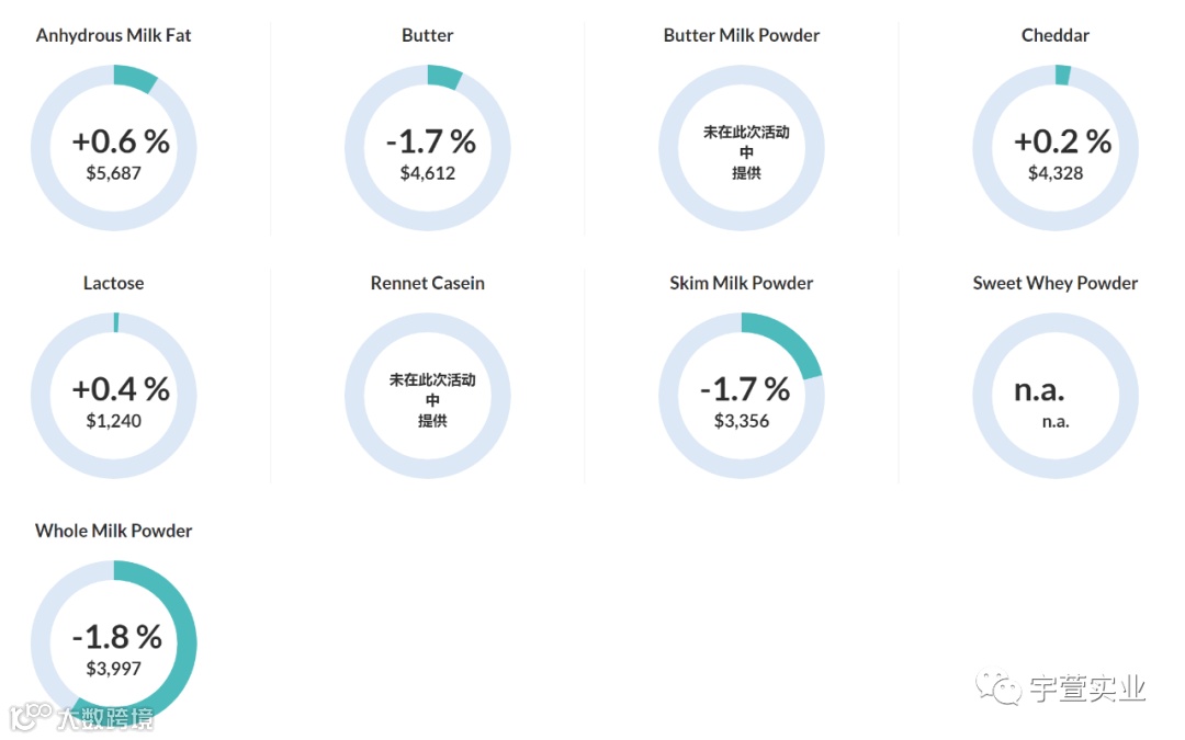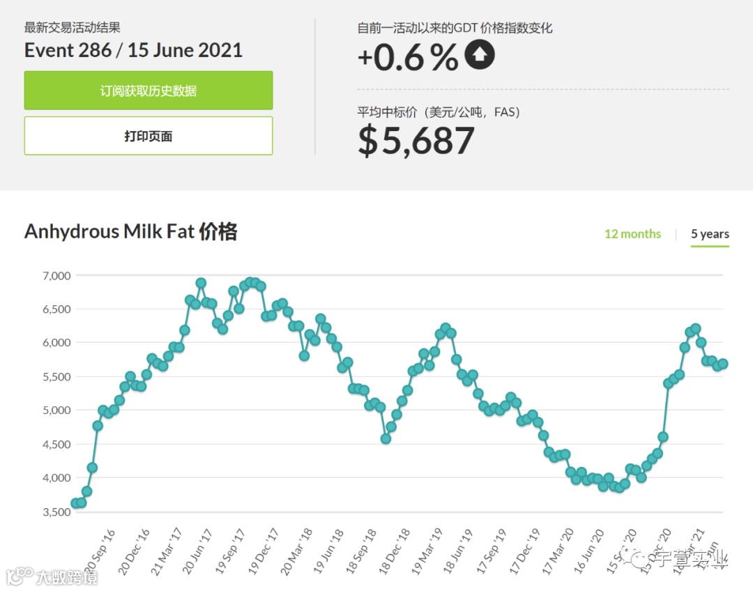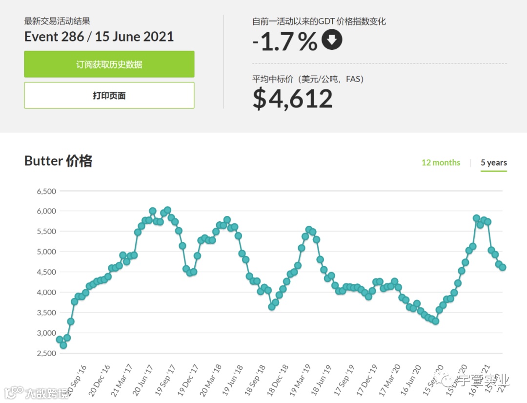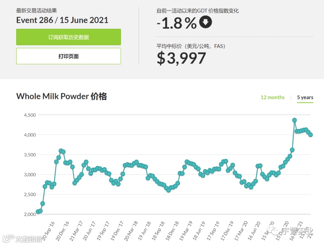 GDT第286次拍卖结果于2021年6月15日结束,此次拍卖较上期价格下降1.3%,中标均价4083美元/公吨,具体各产品价格涨跌如下(数据来源于Globaldairytrade):