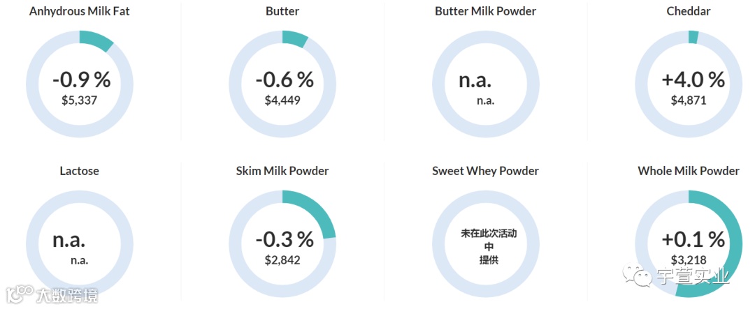 本次GDT拍卖共成交31,872吨,较GDT323成交量下降5%,平均中标价格3,393美元/公吨,较GDT323略降0.1%。