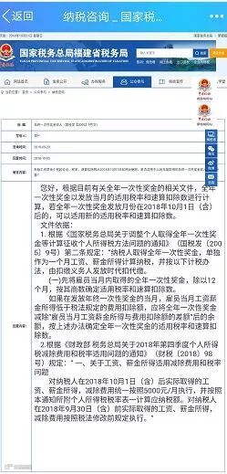 那正常情况下2018年年终奖岂不是要按照新个人所得税法的计算方法并入2019年度综合所得计算缴税了?当然,如果在2019年1月1日及之后发放的年终奖,应该是要按照新个税法的思路处理。最近有网友就年终奖发放问题咨询国家税务总局福建省税务局,问题如下: