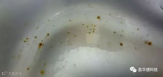 2、 不锈钢表面粘附有机物汁液(如瓜菜、面汤等),在有水氧情况下,构成有机酸,长时间则有机酸对金属表面造成腐蚀生锈;