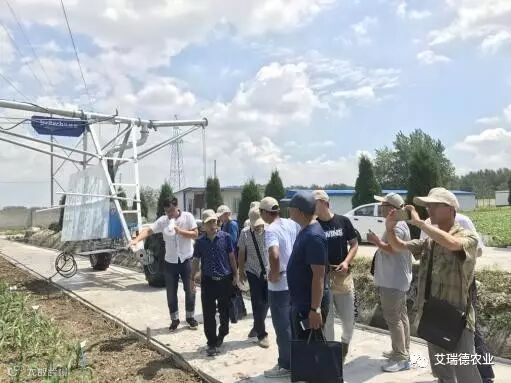 参观期间,艾瑞德平移机正在运行灌溉,同时艾瑞德工作人员也对设备进行了详细的解说,领导及专家对艾瑞德平移机灌溉均匀度高,自动化控制强、地块100%的利用率等优点进行了高度赞扬并指出农科院要想系统性育出优良品种,还需得用这种灌溉均匀度高的大型平移式喷灌机。