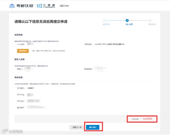 (2)填写申报书并确认银行卡等信息是否正确(以免补贴资金支付失败)。