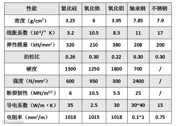 氮化硅的线膨胀系数大约是轴承钢的1/4,所以随温度变化的尺寸变化量小,故有益于在温度变化大的环境中使用。