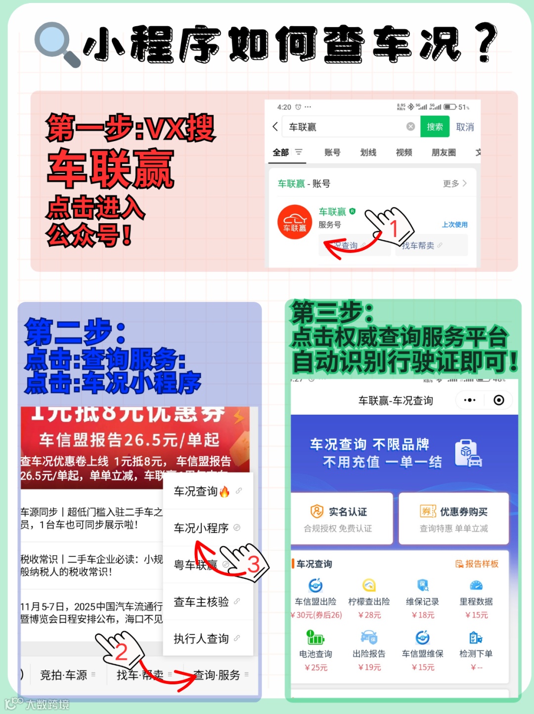 导读:【车联赢查车况】——钜惠车型大赏——车联赢查车况,不用充值、不限品牌、一单一结,车信盟,柠檬查,里程真假效验,维保记录全都有!