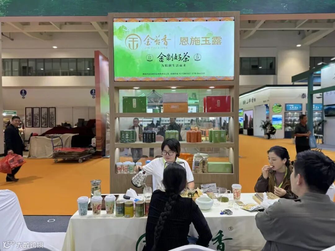 只见展位前摆放着有“千年蒸青”恩施玉露、“百年功夫”利川红茶,更有新品爆款杯泡茶系列,阵阵茶香吸引茶客驻足品尝。