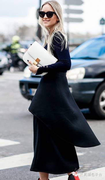 如果是选择商务类型要外出办事的时候,就不适宜精巧的小包包,这时候可以根据自己的身高跟实际的需要去选择偏宽大的包,但是也要考虑身高。身高158cm以下的呢,可选全长约40cm、可以横着装进一个iPad的包就差不多了;身高158~168cm之间的,可以选全长约50cm,可以横着装进一本杂志的包包;至于超过身高>170cm的,只要你背得动,多大的包都可以啦~(当然最好还是加入高跟鞋的高度综合考虑,如果你能操纵比较高的高跟鞋,你也可以选择稍微大一点的包包,其实最重要的还是整体和谐,美观!)