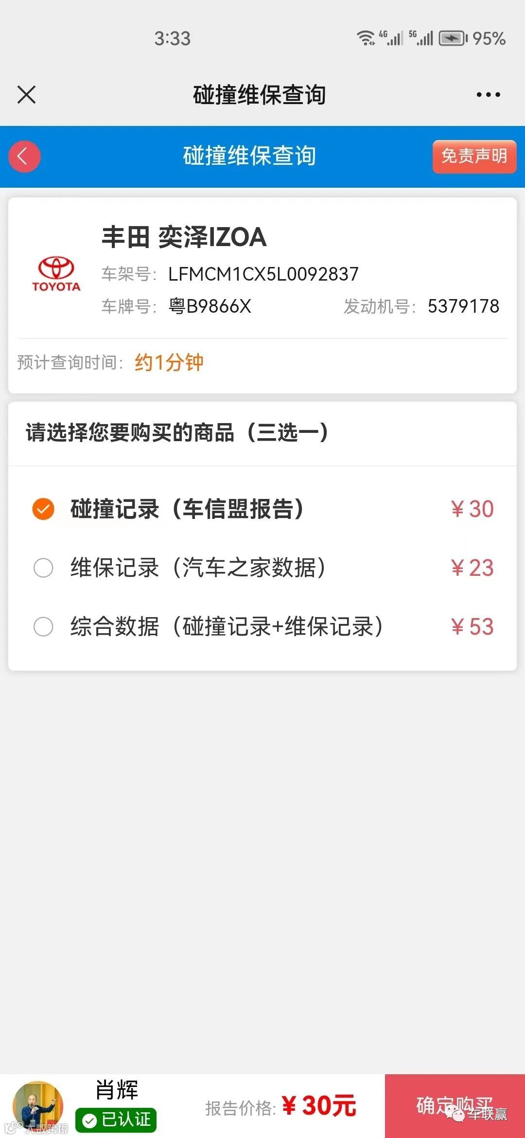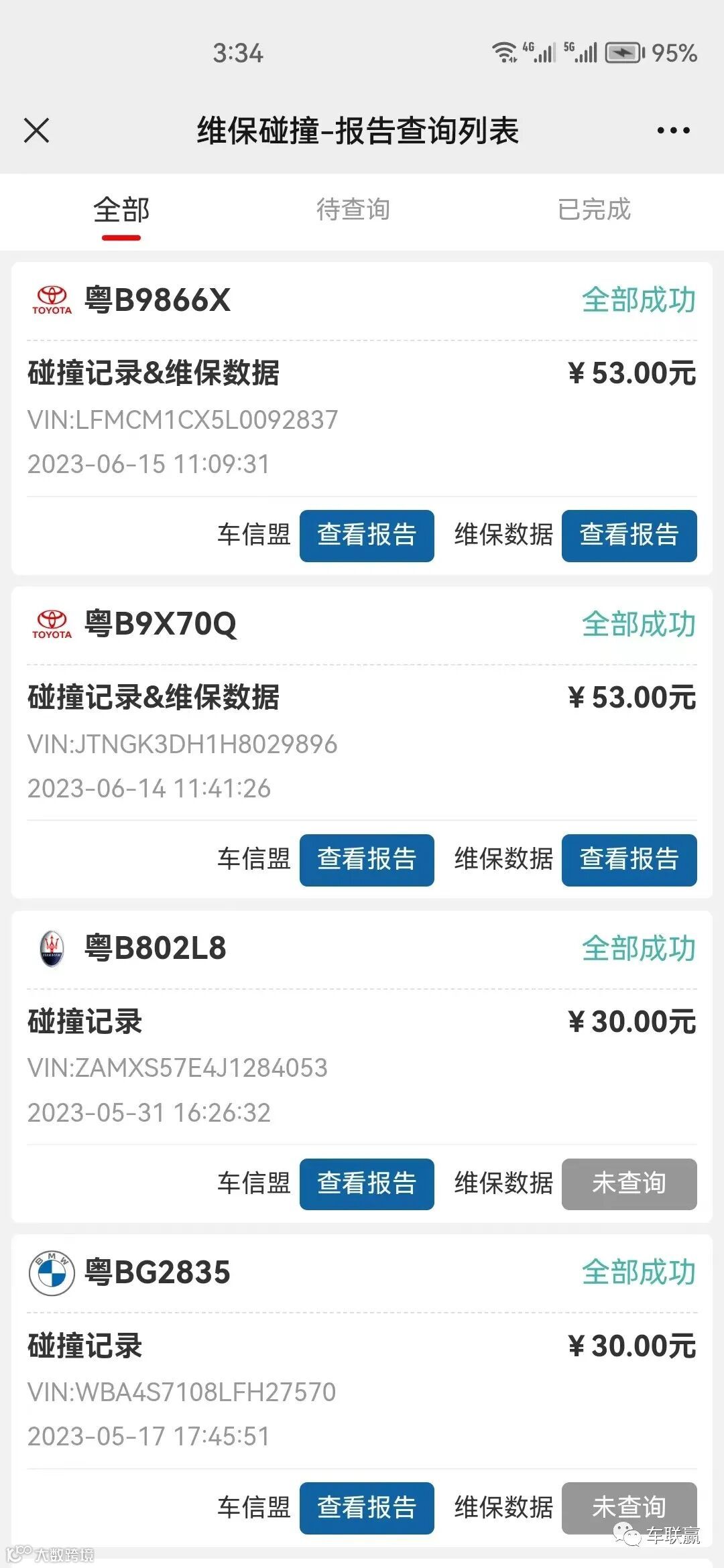 所有涉及车况报告查询业务,均需在线完成实名认证后才可查询(免费实名认证),保障同行信息隐私安全,可放心使用;