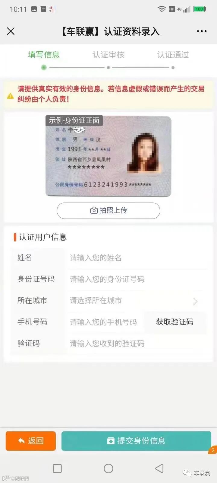1:上传身份信息,确认资料